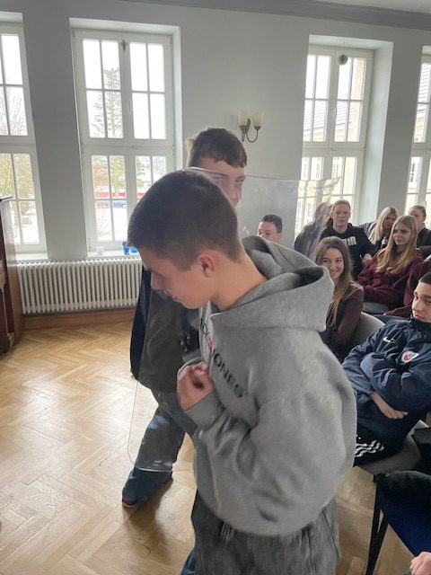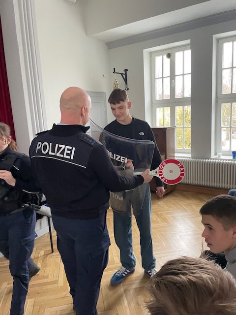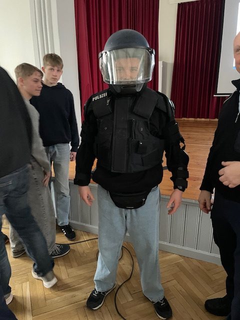 Die jeweils 90-minütigen Vorträge waren abwechslungsreich gestaltet und wurden durch tolle Beiträge, persönliche Erfahrungen der Referenten sowie eindrucksvolle Videos untermalt. Besonders großen Anklang fand bei den Schülerinnen und Schülern die praktische Vorstellung der Polizeiarbeit. Das Anlegen und Ausprobieren der Polizeiausrüstung sorgte für großes Interesse und Begeisterung und machte die Veranstaltung zu einem spannenden und lehrreichen Erlebnis.