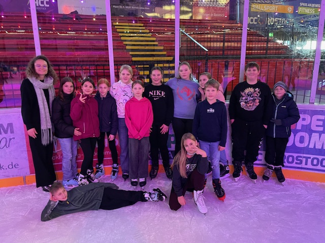 Ein Highlight war der gemeinsame Besuch der Schule in der Eishalle Rostock, bei dem alle viel Freude auf dem Eis hatten. Außerdem wurde fleißig gebastelt, gewichtelt und in der Weihnachtsbäckerei leckere Plätzchen gebacken. Diese gemeinsamen Erlebnisse haben die Woche zu etwas ganz Besonderem gemacht und die Vorfreude auf Weihnachten noch verstärkt.
